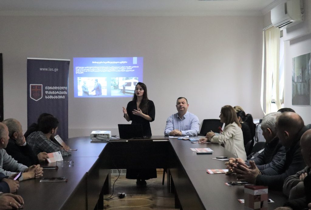 იურიდიული დახმარების სამსახურის დირექტორის მოადგილემ, ლევან გვენეტაძემ, იურისტ-ანალიტიკოსმა თამარ ნაჭყებიამ, რეგიონულმა მენეჯერმა მაგდა ხამხაძემ, შეხვედრის მონაწილეებს მიაწოდეს დეტალური ინფორმაცია იმის შესახებ, თუ რა სახის სერვისების მიღება არის შესაძლებელი იურიდიული დახმარების სამსახურში, ვის და სად შეუძლია ისარგებლოს უფასო იურიდიული კონსულტაციითა და საადვოკატო მომსახურებით, რა კრიტერიუმები განსაზღვრავს ბენეფიციარებისათვის სერვისების მიწოდებას. ასევე განიხილეს მუნიციპალიტეტის სოფლებში მობილური საკონსულტაციო ცენტრის ფუნქციონირებასთან დაკავშირებული საკითხები.