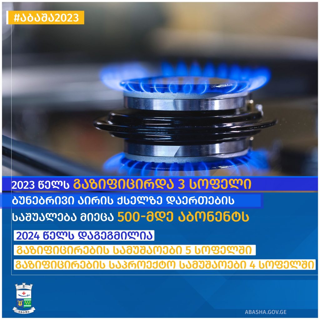 აბაშის მუნიციპალიტეტში 2023 წელს გაზიფიცირდა 3 სოფელი: ქოლობანი, გუგუნაყათი, ბულვანი, სულ მალე ამ სოფლებში ქსელზე დაერთების საშუალება ექნება 525-მდე აბონენტს.