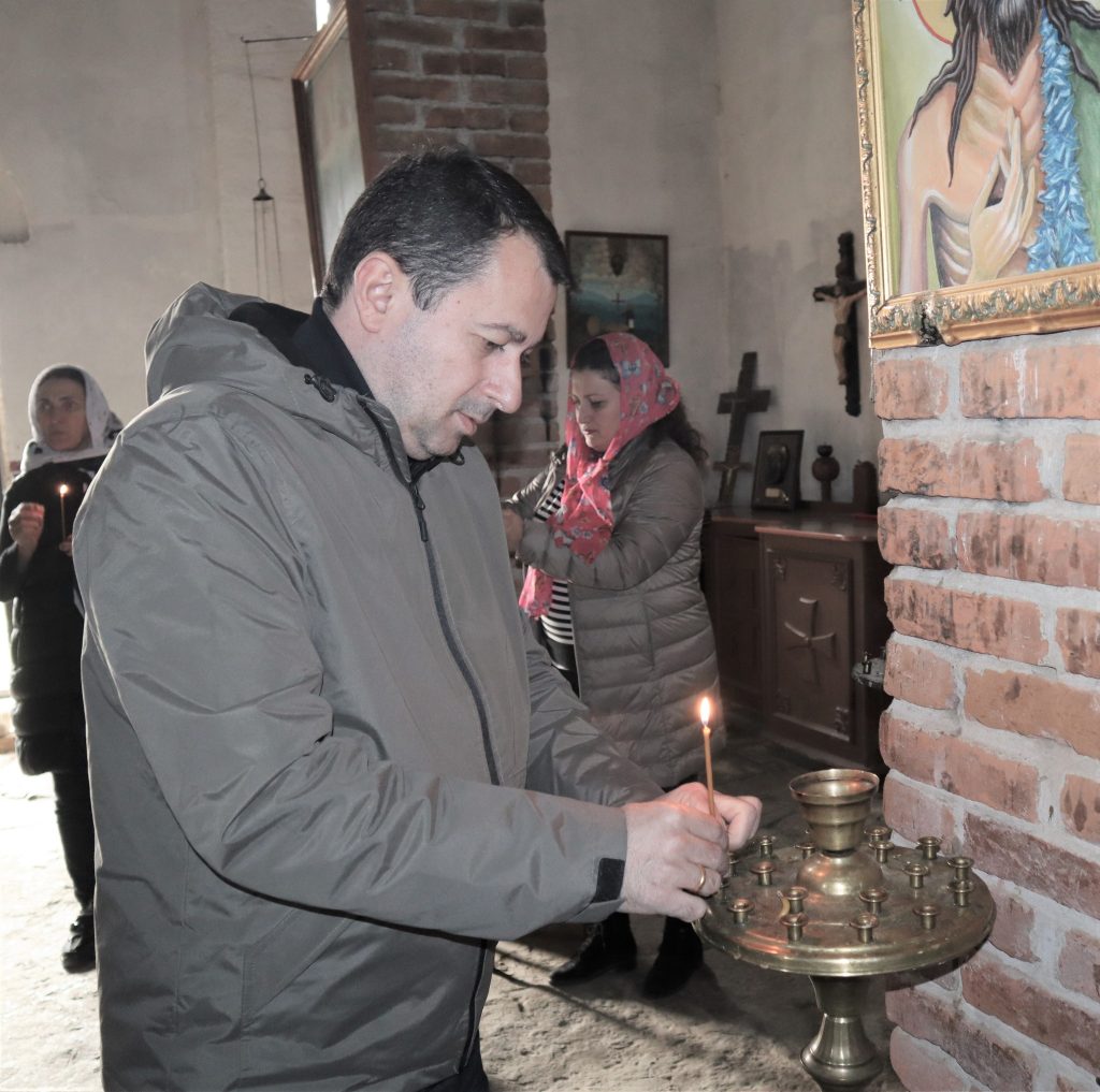 მერმა ეკლესიის მოძღვართან ერთად, საკურთხევლის მოხატულობაც დაათვალიერა, რომლის მოხატვაც მრევლის, ლევან კაჭარავას შემოწირულობით სულ ახლახანს დასრულდა.