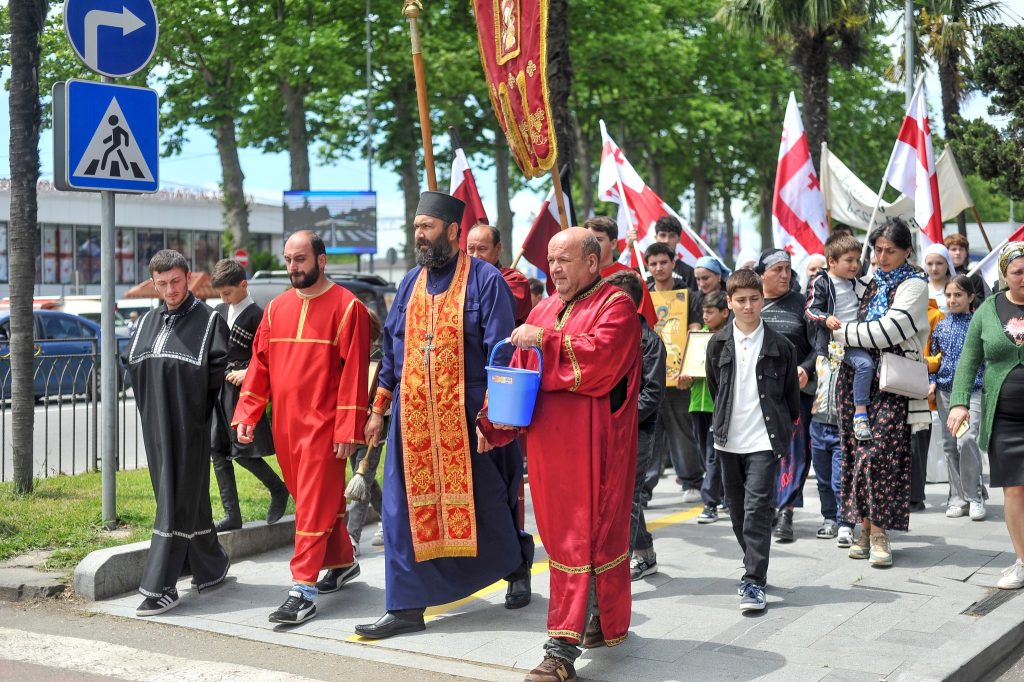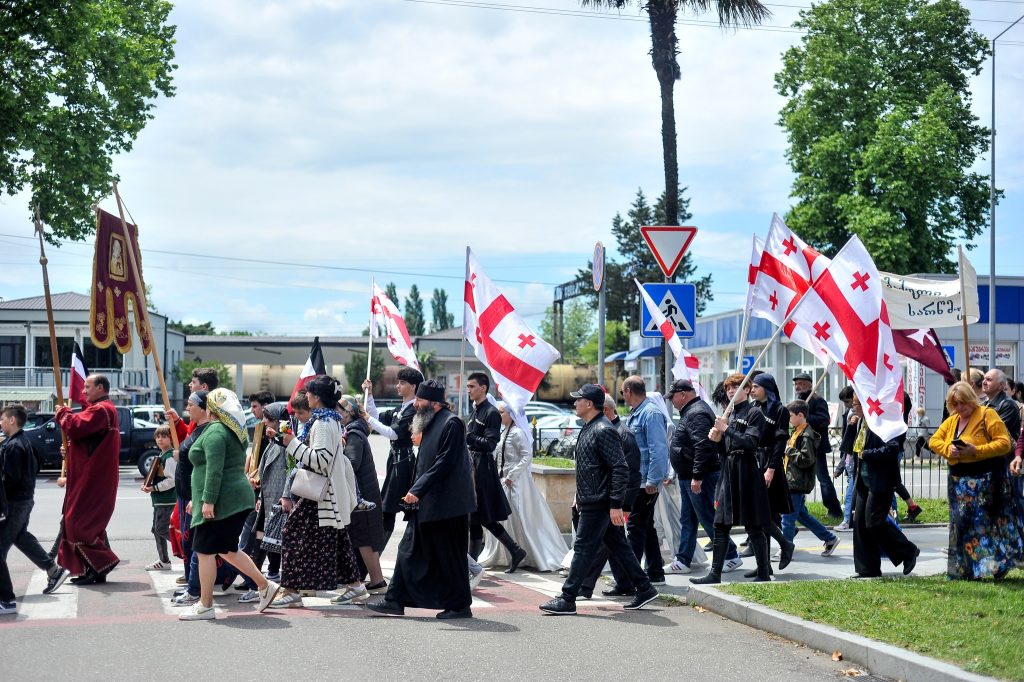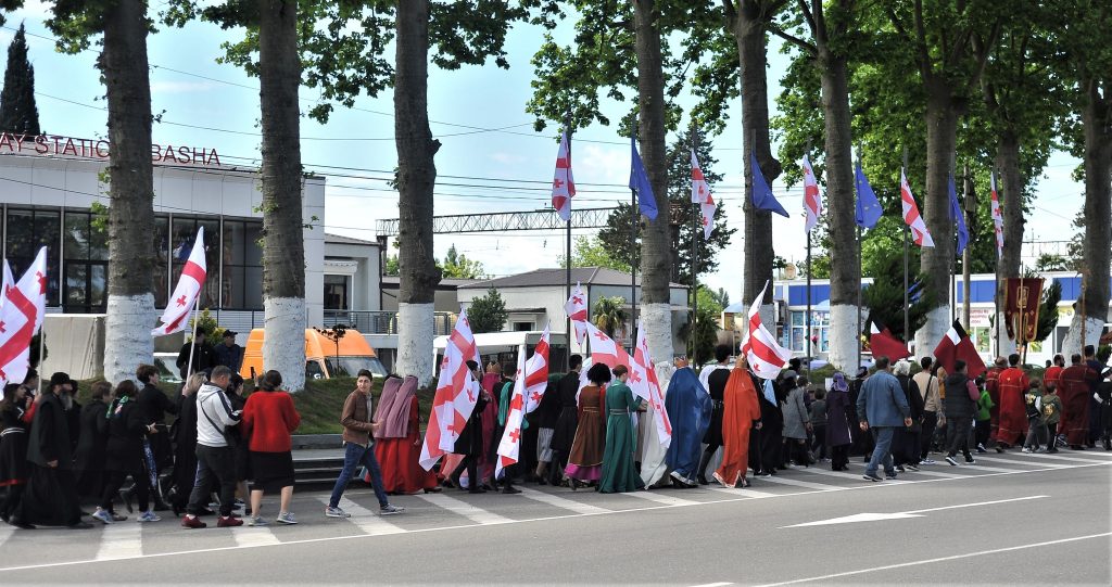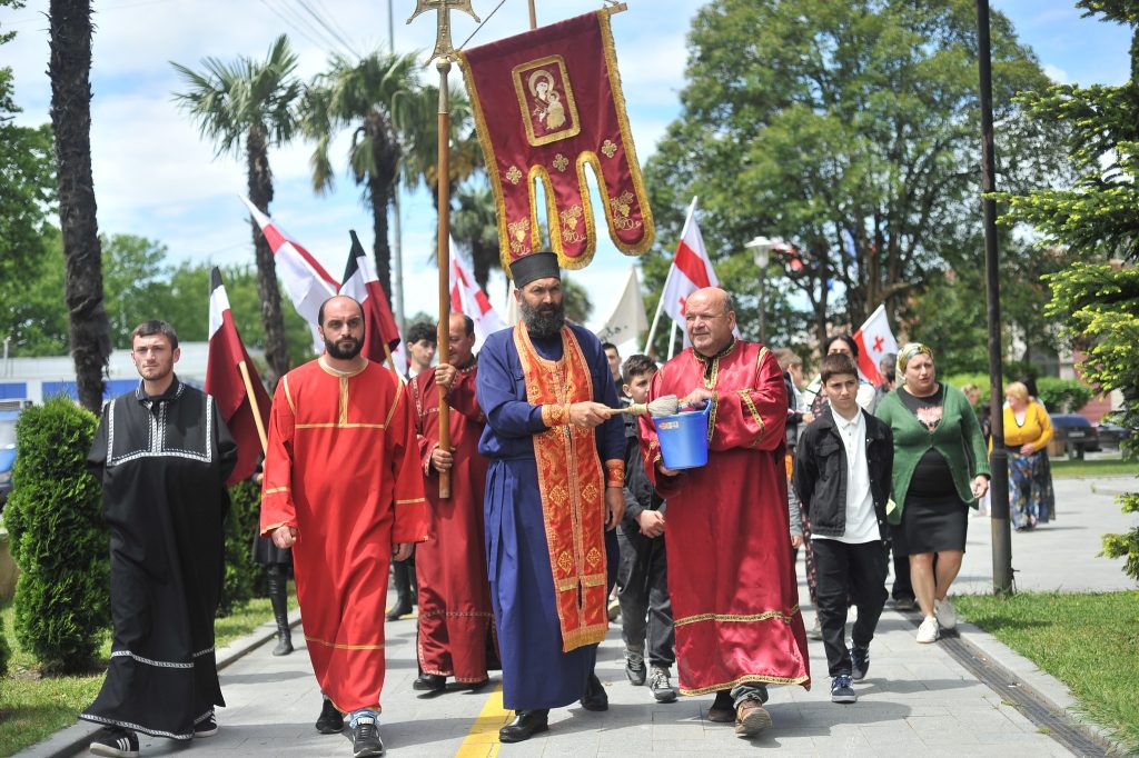 აღნიშნულ დღესთან დაკავშირებით, აბაშის ღვთისმშობლის შობის სახელობის საკათედრო ტაძარში დეკანოზმა, კონსტანტინე კაჭარავამ სამადლობელი პარაკლისი აღავლინა, სიტყვით მიმართა მრევლს და ამ დღის მნიშვნელობაზე ისაუბრა. მსახურების დასრულების შემდეგ ქალაქის ცენტრისკენ საზეიმო მსვლელობა მოეწყო.