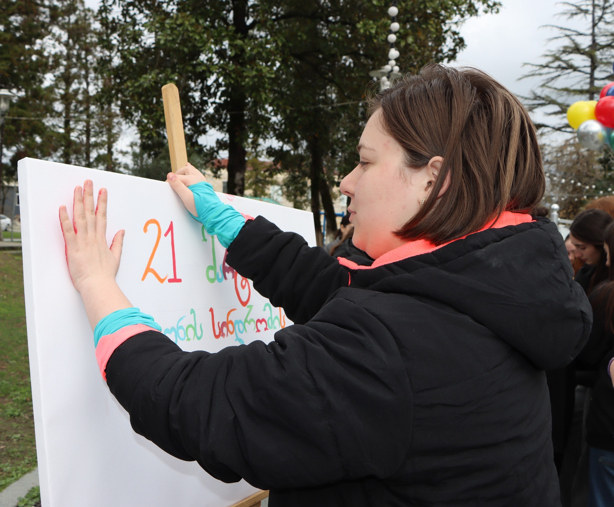 მოსწავლეებმა სიმბოლურად, ცაზე 21 ფერადი ჰელიუმის ბუშტი გაუშვეს, დაუნის სინდრომის მქონე ადამიანების სოლიდარობისა და მხარდაჭერის ნიშნად. დარიგდა საინფორმაციო ფლაერები.
