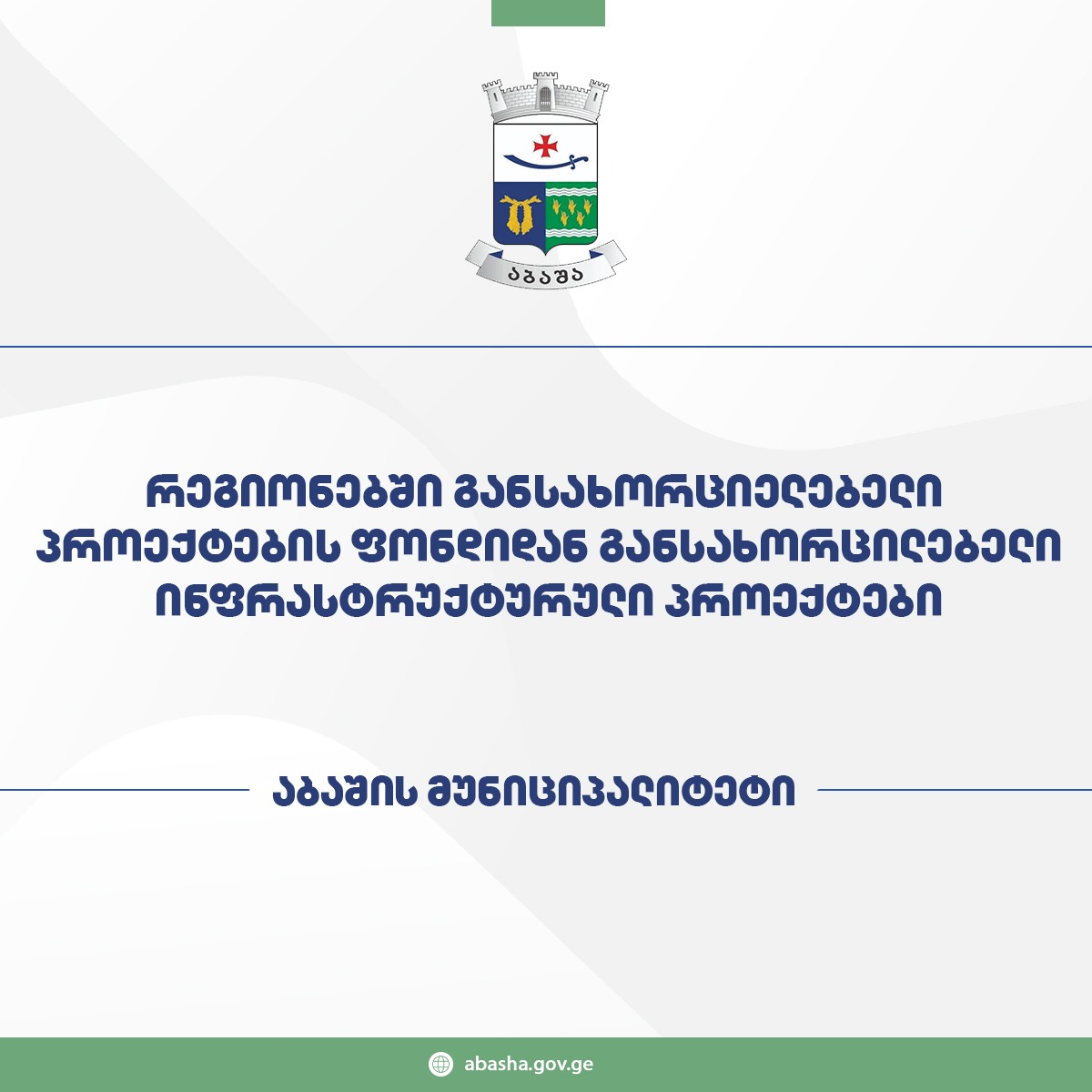 2026 წელს აბაშის მუნიციპალიტეტში პირველ ეტაპზე განხორციელდება შემდეგი ინფრასტრუქტურული პროექტები: