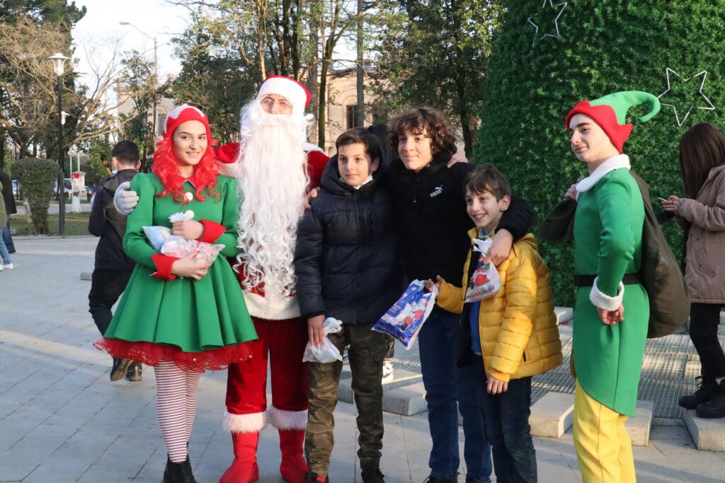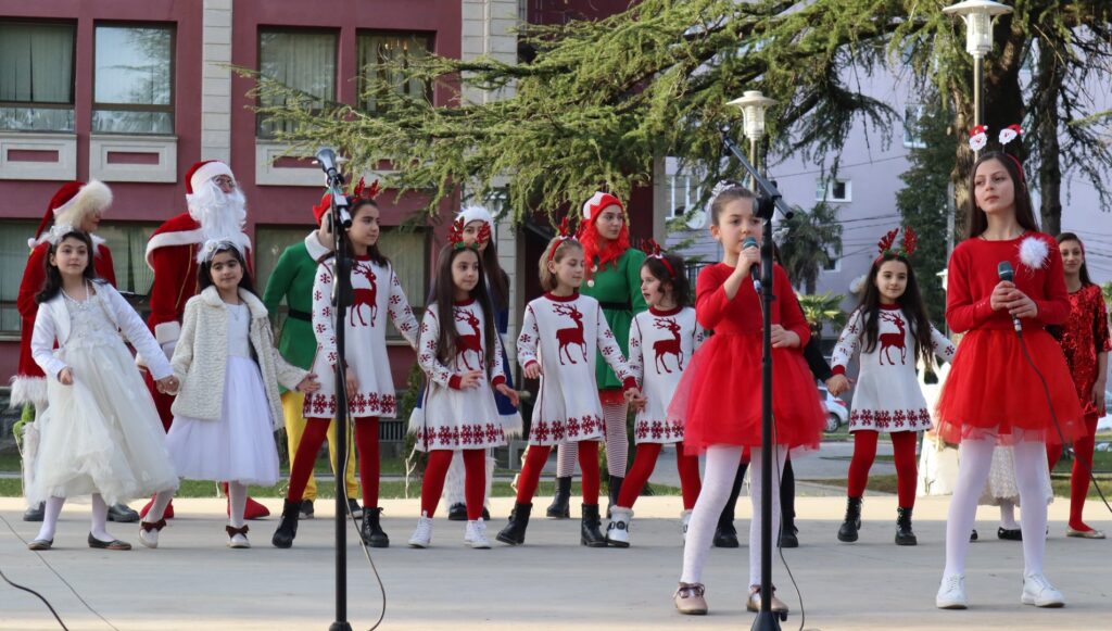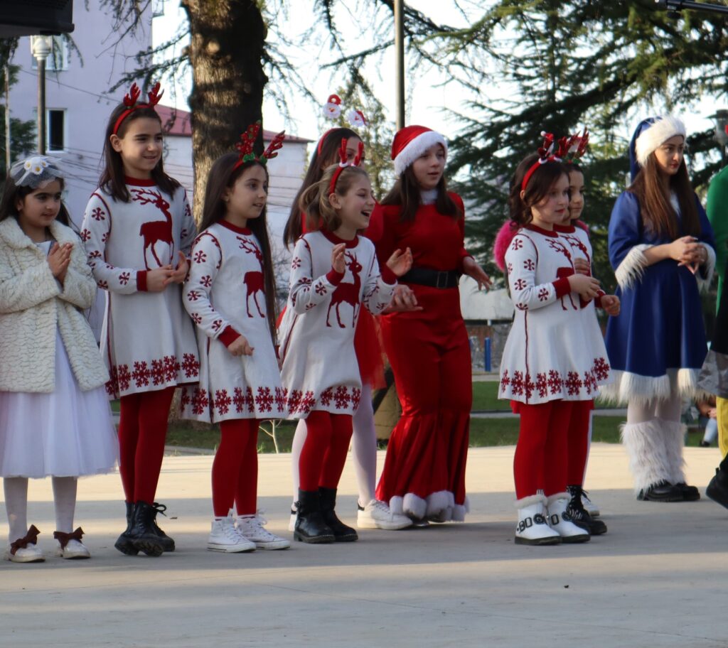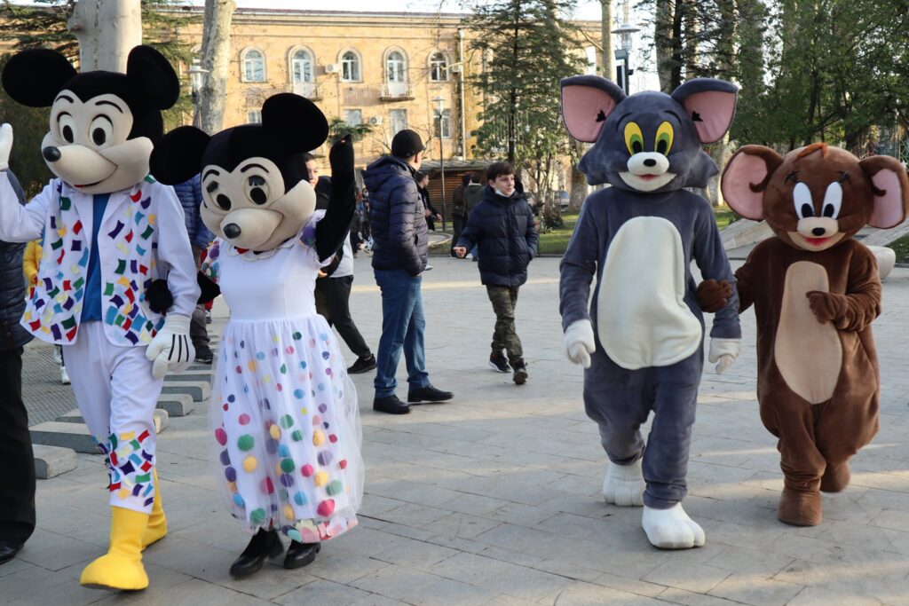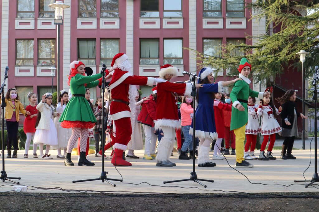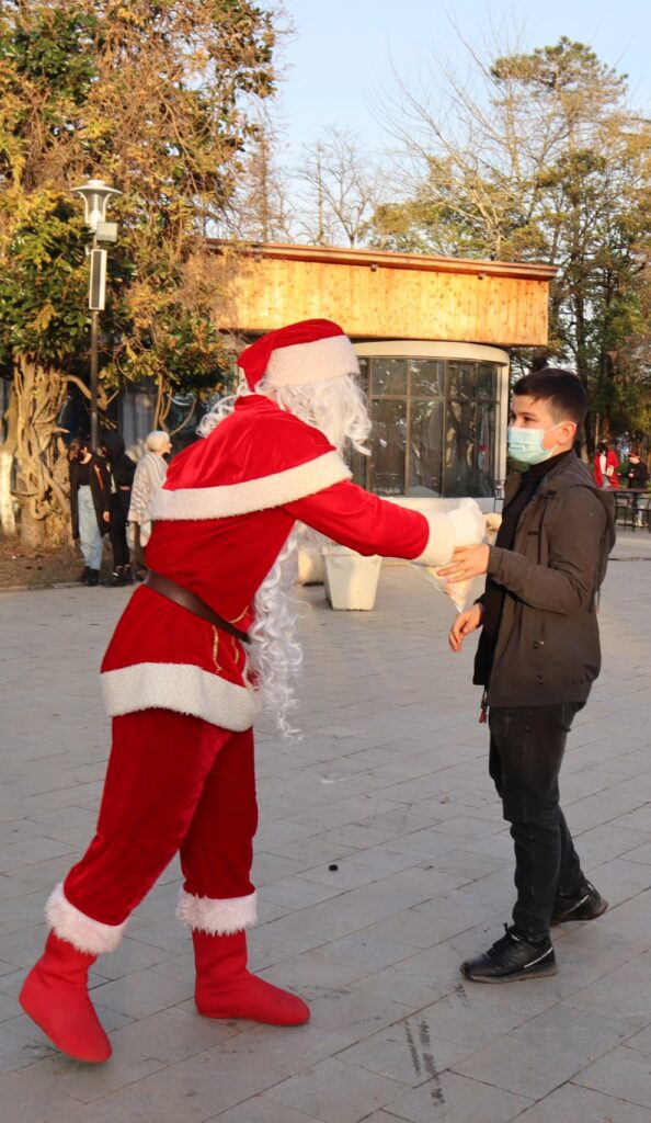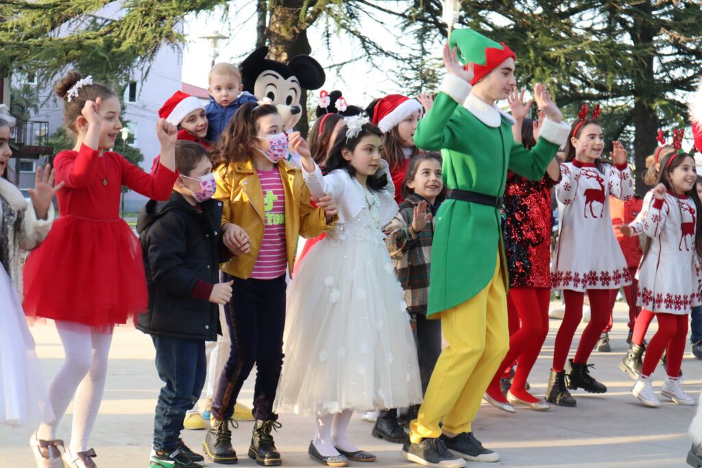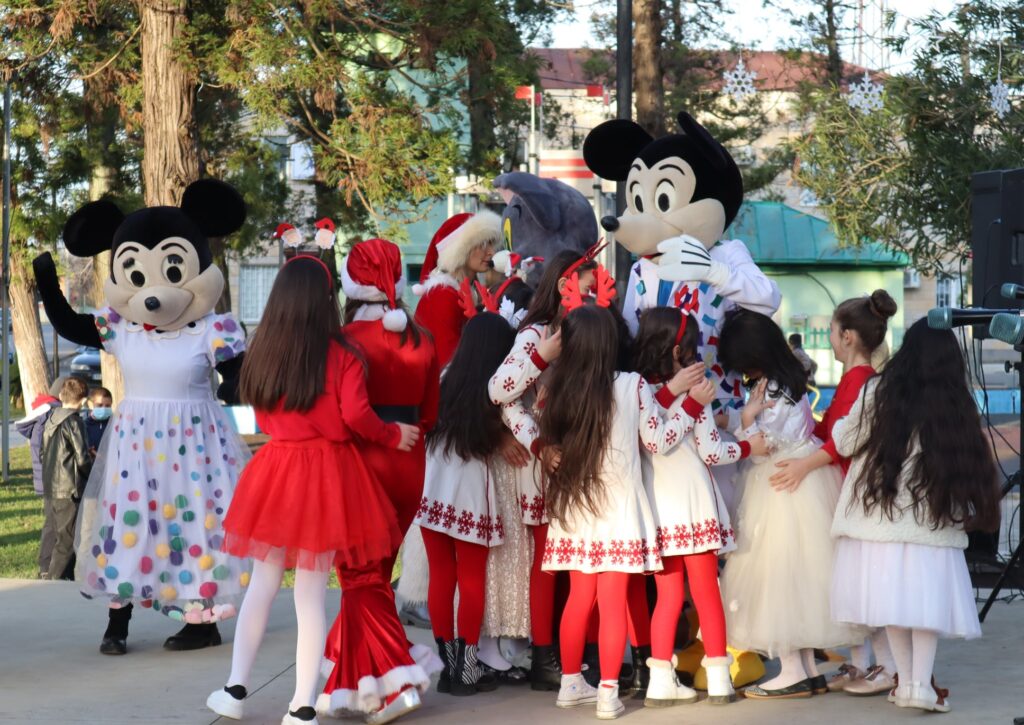 თოვლის ბაბუა, ფიფქია და ზღაპრების გმირები ზრუნავდნენ პატარების განწყობაზე. ზეიმის დასასრულს თოვლის ბაბუამ ბავშვებს საახალწლო საჩუქრები დაურიგა.
