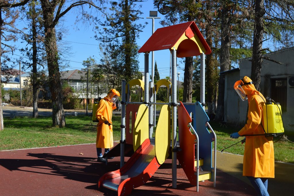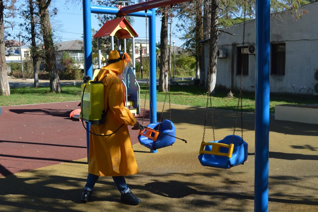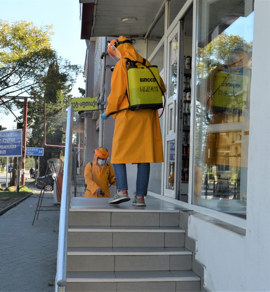 დღეს მერიის მობილური ჯგუფების მიერ სადეზინფექციო ხსნარით დამუშავდა აფთიაქებთან მისასვლელები, ტროტუარები, საბავშვო მოედანი, საზოგადოებრივი თავშეყრის ადგილები.