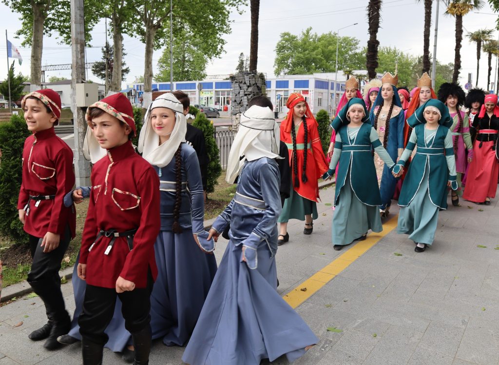 კულტურისა და ხელოვნების განვითარების ცენტრის ორგანიზებით გამართულ მსვლელობაში მონაწილეობდნენ სიმღერისა და ცეკვის სახალხო ანსამბლ ,,ჰარირას“ მომღერალ ვაჟთა გუნდი და ქორეგრაფიულ ანსამბლ „ანანურის“ მოცეკვავეები.