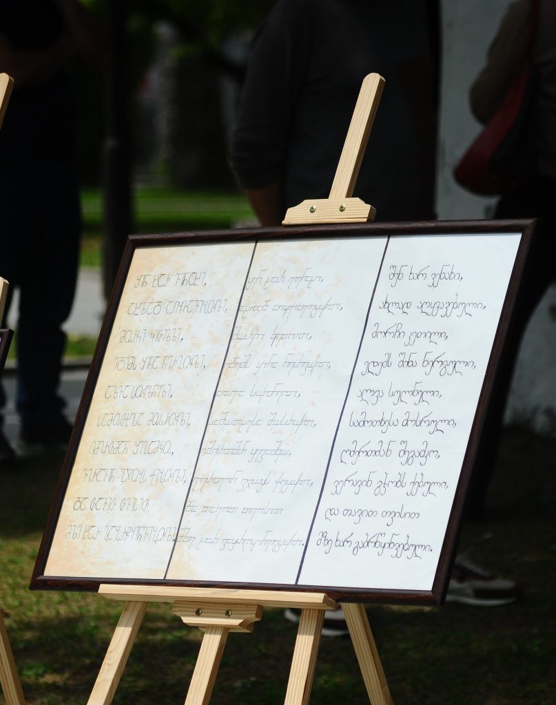 საქართველოს ჰიმნის ფონზე მოეწყო მოსწავლეთა მსვლელობა ეროვნული დროშებით. გამოფენილი იყო კალიგრაფიული ნამუშევრები ასომთავრული, ნუსხური და მხედრული ანბანების მიხედვით.
